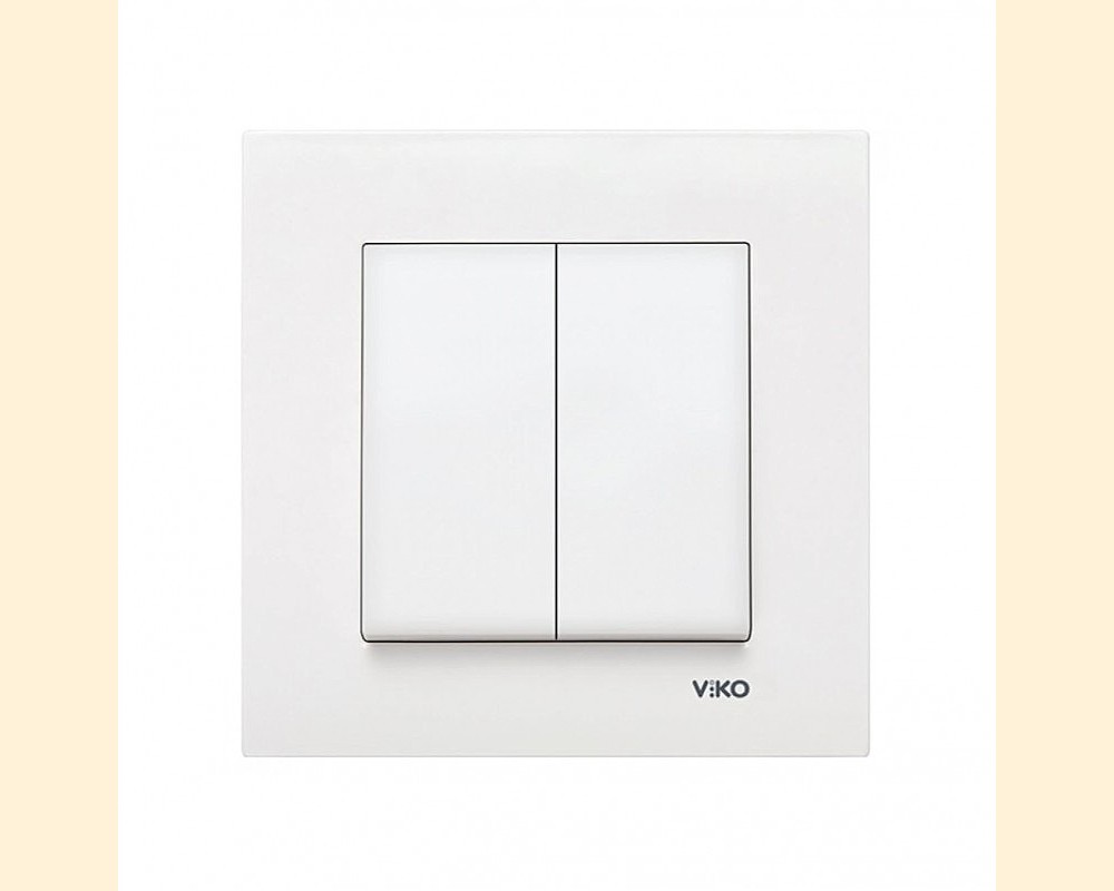 Двухклавишный выключатель из серии Karre от турецкого производителя Viko. Этот выключатель предназначен для управления двумя независимыми группами освещения из одного места.