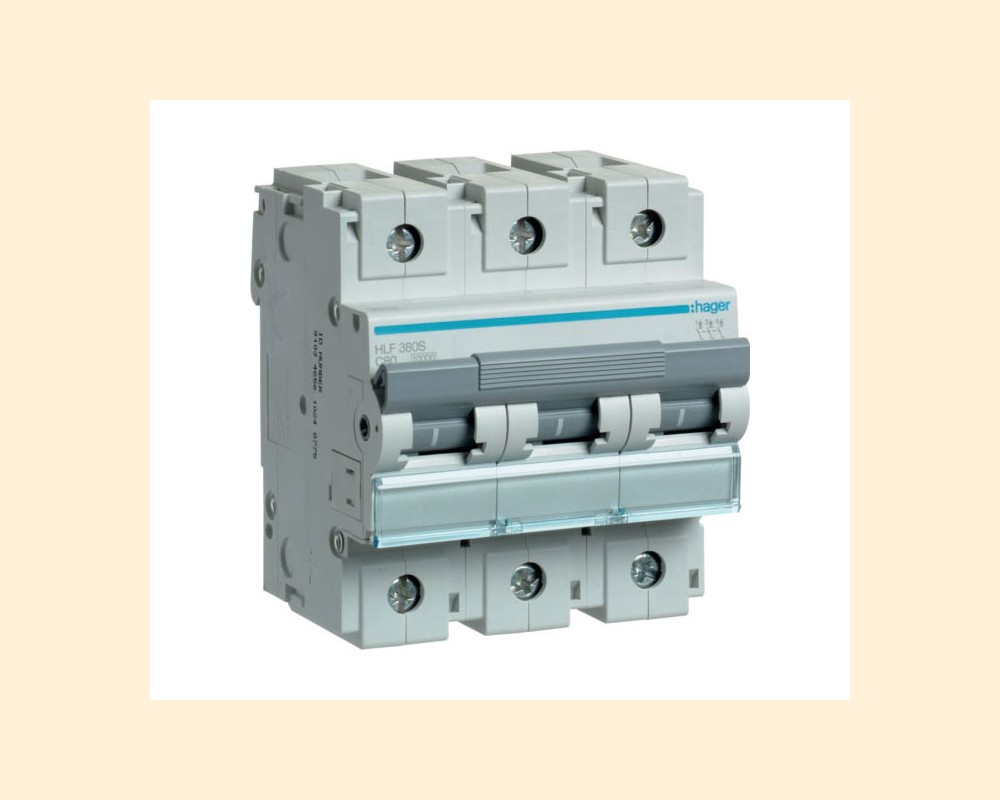 Hager HLF380S — это модульный автоматический выключатель, предназначенный для защиты электрических цепей от перегрузок и коротких замыканий в трехфазных сетях.
