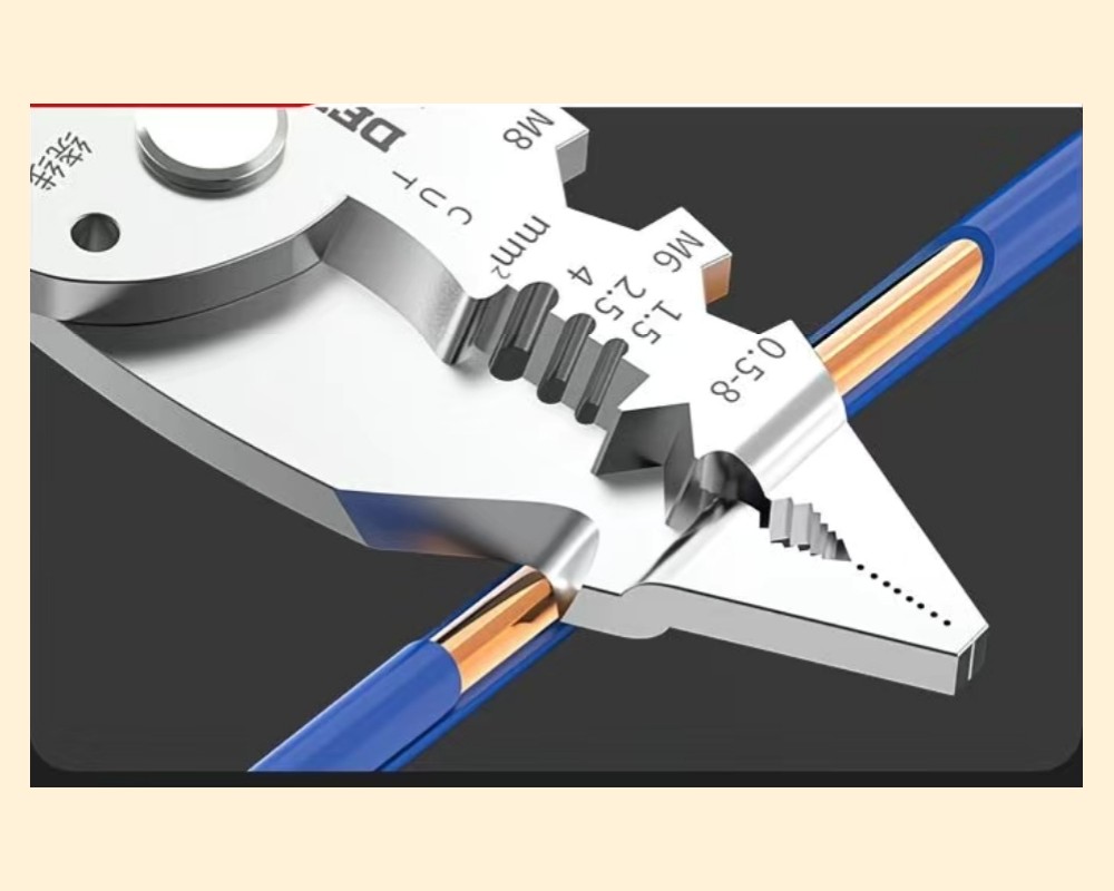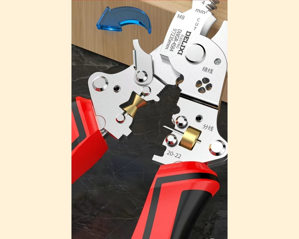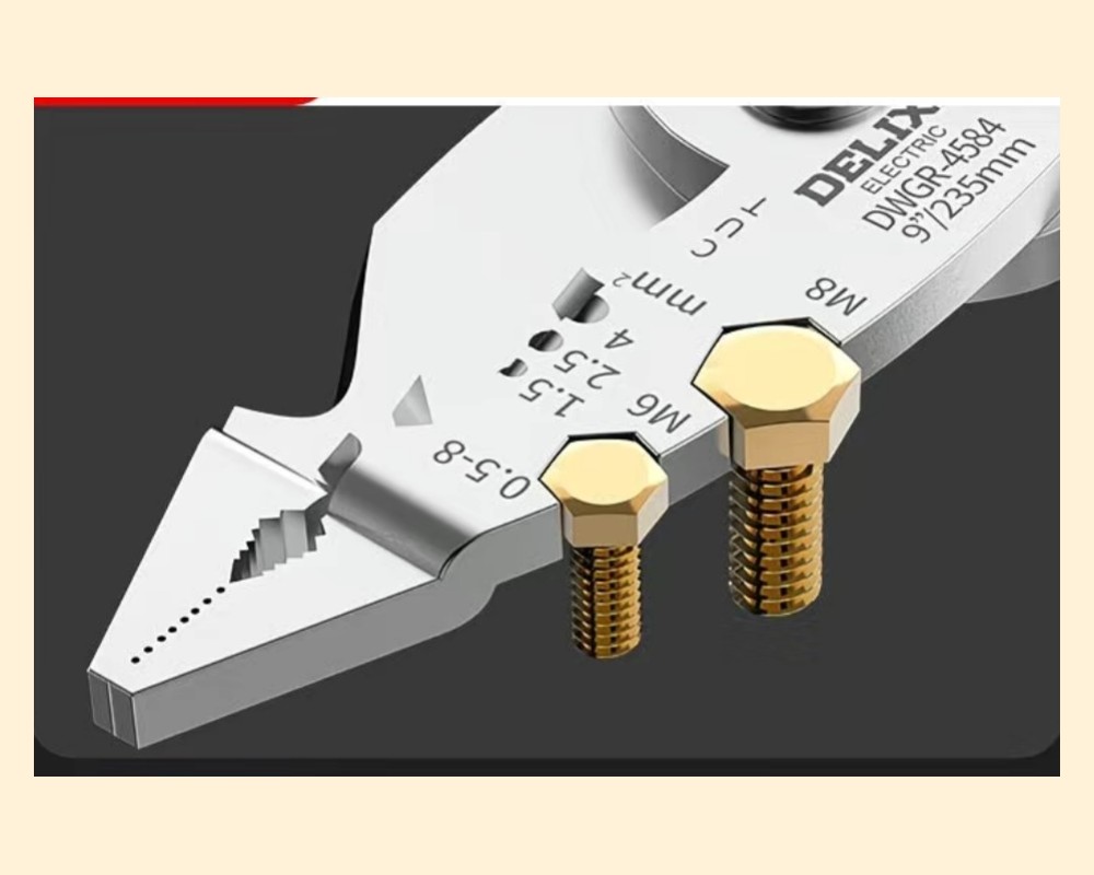Многофункциональные плоскогубцы Delixi DWGR-4584 Это многофункциональный инструмент от бренда Delixi Electric, сочетающий функции плоскогубцев и тестера напряжения. Основные функции и особенности Тестер напряжения: Ручка инструмента выполняет роль тестера напряжения. Она может определять наличие переменного и постоянного тока в диапазоне 12-250В. Многофункциональность: Инструмент предназначен для выполнения различных задач, включая зачистку, обрезку, обжим проводов и кабелей, а также может использоваться как ключ для болтов (M6, M8). Материал: Изготовлен из высококачественной хромованадиевой или высокоуглеродистой стали для обеспечения прочности и долговечности. Рукоятка выполнена из нескользящего материала TPR. Безопасность: В инструкции по применению указано, что инструмент не изолирован, поэтому его нельзя использовать во время работы под напряжением. Тестер напряжения предназначен только для экстренных ситуаций и для его использования необходимо касаться ладонью контактной площадки на конце ручки.