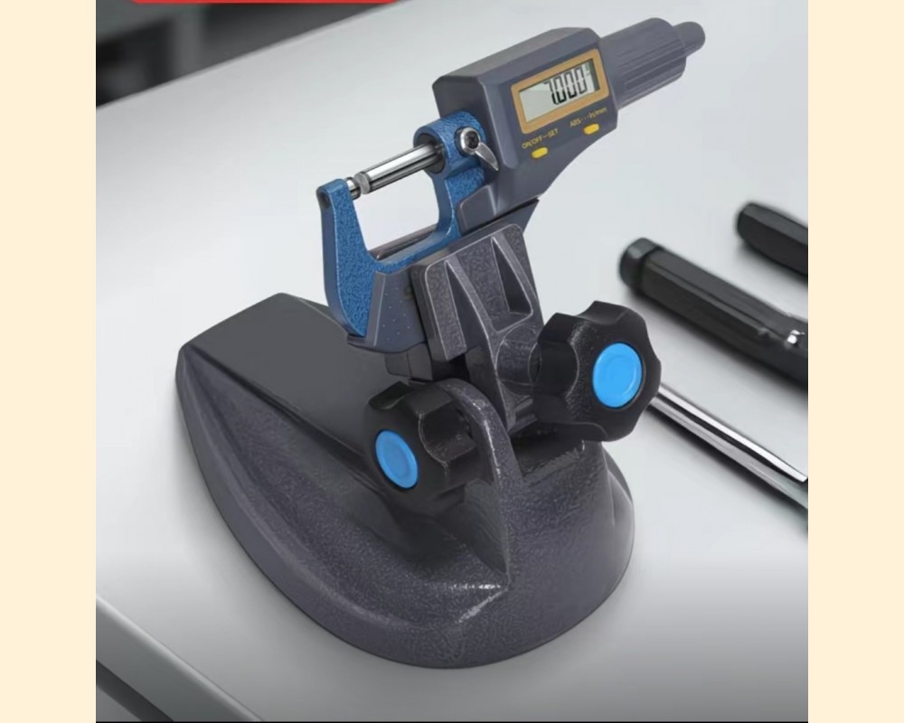 Подставка микрометра предназначена для фиксации измерительного прибора во время работы. Использование такой подставки позволяет повысить точность и повторяемость измерений. Краткое описание и характеристики: Тип: Усиленная модель. Материал: Чугун. Покрытие поверхности: Молотковая краска. Диапазон зажима: 0-21 мм. Габариты: Длина: 162 мм. Ширина: 118 мм. Высота: 130 мм. Толщина: 6,6 мм. Вес: 1,281 кг.