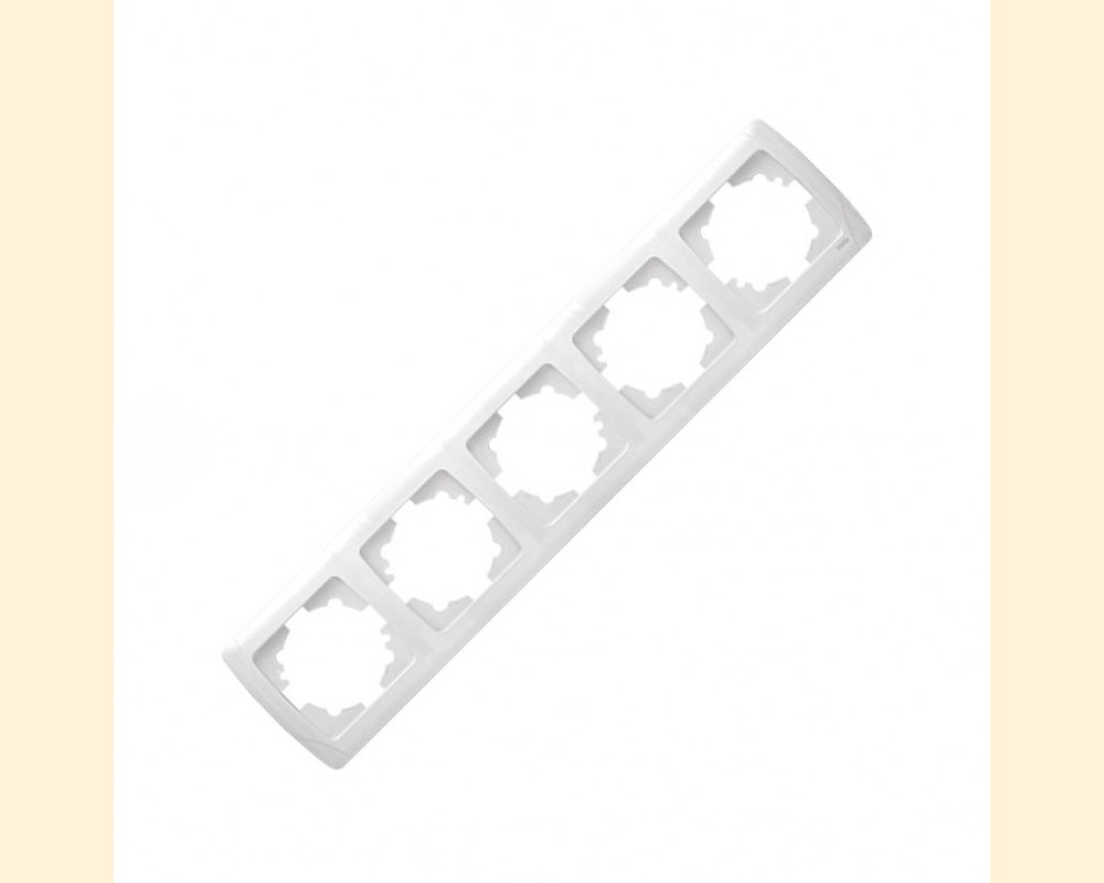 Ця рамка призначена для встановлення п'яти електроустановлювальних виробів (наприклад, вимикачів або розеток) в одному горизонтальному блоці. Вона виготовлена із міцного АБС-пластику з глянсовою поверхнею та призначена для прихованого чи зовнішнього монтажу.