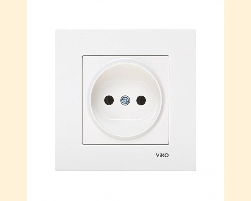 Одинарна електрична розетка без заземлення із серії Viko Karre білого кольору. Ця серія електроустановочних виробів відрізняється мінімальним дизайном з чіткими прямими лініями.