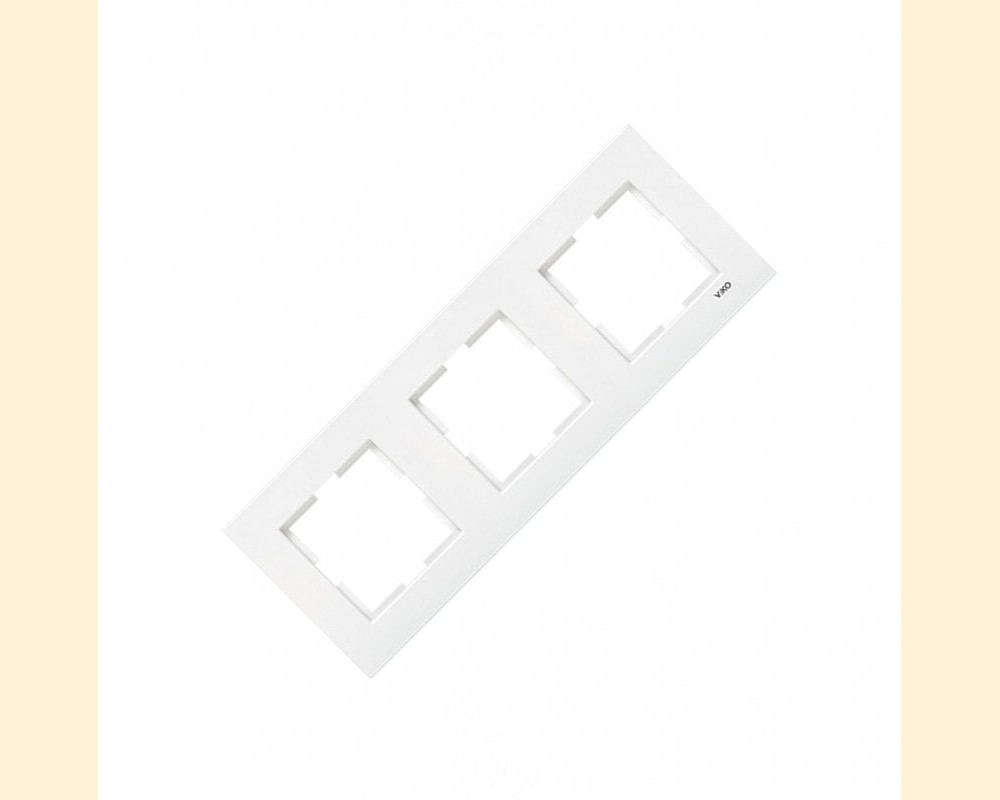Потрійна горизонтальна рамка білого кольору для розеток та вимикачів із серії Viko Karre. Ця рамка призначена для встановлення трьох електроустановних виробів у ряд.