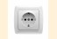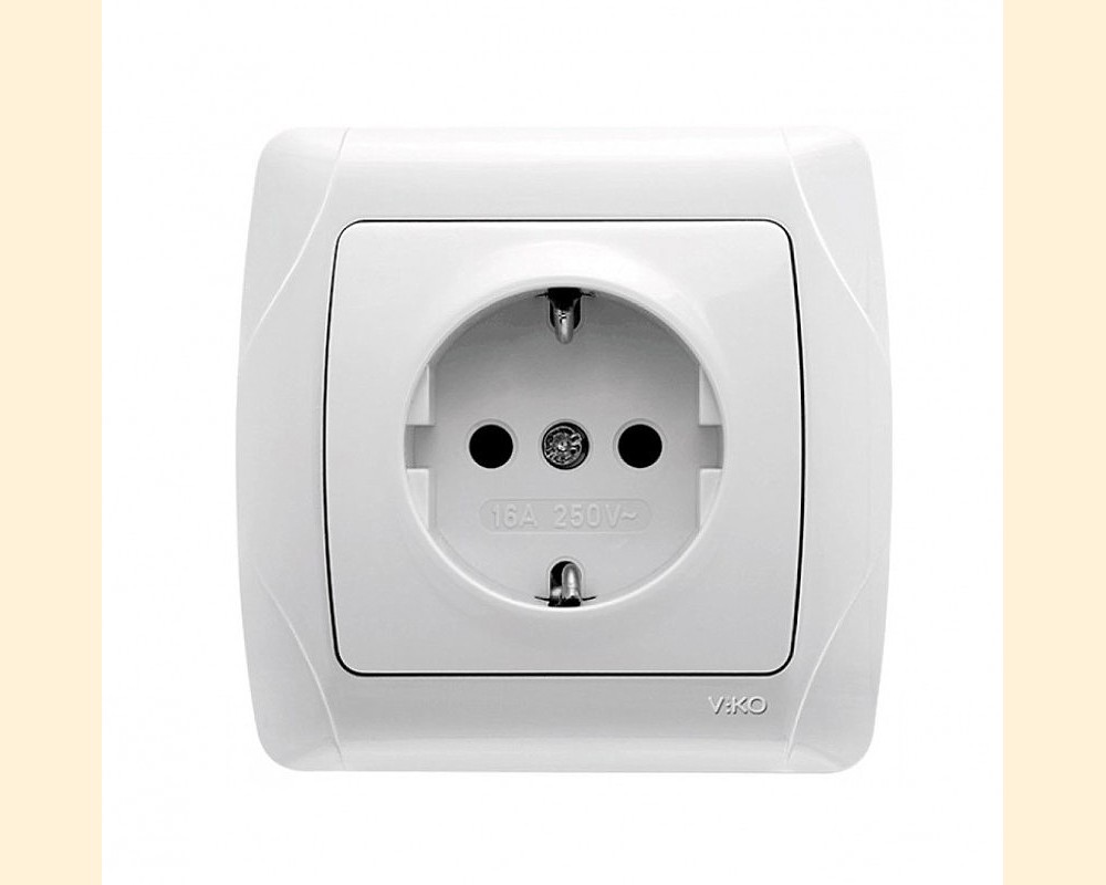Одинарна розетка Viko із серії Carmen із заземленням. Розетки цієї серії відрізняються округлими лініями та класичним дизайном, що підходить для різних інтер'єрів.