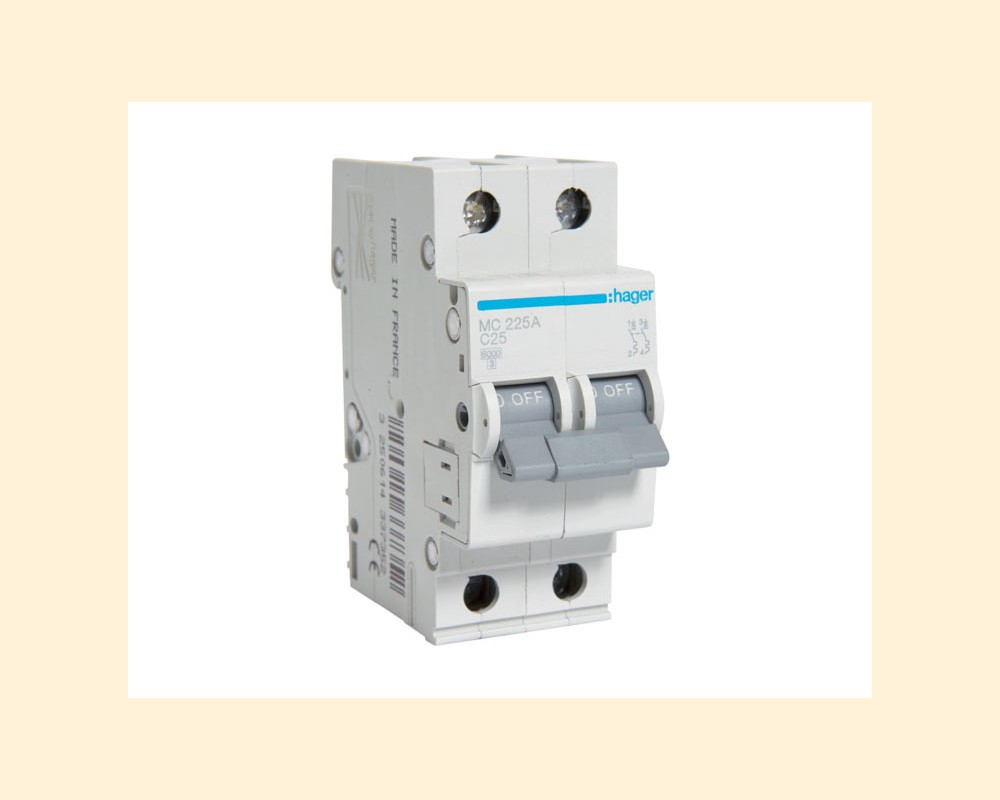 Hager MC225A – це двополюсний автоматичний вимикач, призначений для захисту електричних кіл від перевантажень та коротких замикань.Основні характеристики:Номінальний струм: 25 А.Кількість полюсів: 2.Характеристика відключення (крива): C.Номінальна здатність, що відключає: 6 кА.Номінальна напруга: 230/400 Ст.Кількість модулів: 2.Термін служби: щонайменше 20 000 циклів спрацьовувань.Країна-виробник: Франція.Цей вимикач застосовується для захисту електромереж у приватних будинках, квартирах, громадських та виробничих приміщеннях.Він легко встановлюється на DIN-рейку без додаткових інструментів.