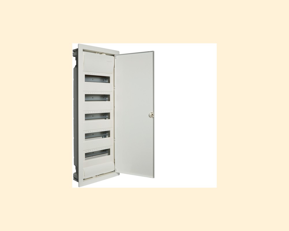Технічні характеристики Архітектура Тип монтажу: внутрішня установка Кришка, двері Тип закривання дверей: Защіпка Ступінь захисту IP: 30 Матеріали Колір: Білий Колір: білий Колір RAL: RAL 9010 - Білий Матеріал: Пластик Розміри Глибина занурення: 89 mm Глибина встановленого виробу: 94,5 mm Висота встановленого виробу: 880,5 mm Висота установки: 845 mm Ширина встановленого виробу: 348 mm Ширина в модулях: 60 Обладнання Кількість рядів щита: 5 Кількість рядів: 5 Можливість приєднання додаткового обладнання: так Стандарти GWT - тест дротом розжарування: 650 °C Європейська директива WEEE: пов'язаний Безпека Захисне виконання ІР: IP30 Клас захисту: Клас захисту IІ