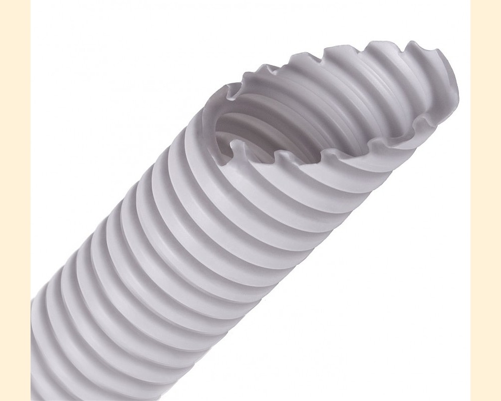 Характеристики та застосування Матеріал: Виготовляється із самозагасаючого ПВХ, що забезпечує пожежну безпеку. Існують також безгалогенні варіанти з поліпропілену (ПП), які використовуються у будинках з підвищеними вимогами до безпеки. Гнучкість і міцність: Труба досить гнучка для зручної прокладки, але при цьому має гарну механічну міцність для захисту кабелів від зовнішніх впливів. Стійкість: Витримує температури від -5 до +60 °C і стійка до механічної дії (320 Н/5 см). Монтаж: Підходить для поверхневої та прихованої установки – у стіні, під штукатуркою, у порожнистих стінах, гіпсокартонних перегородках та стелях. Вибухобезпечність: Може використовуватися в приміщеннях з вибухонебезпечним середовищем (зона 2) та вибухонебезпечним пилом (зона 22). Внутрішня поверхня: Гладка внутрішня поверхня полегшує протяг кабелів. Колір: світло-сірий